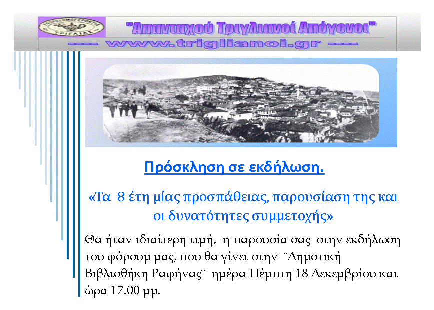 Ευελπιστούμε όχι μόνο στην δική σας συμμετοχή, αλλά να ενημερώσετε και κάθε Τριγλιανό.