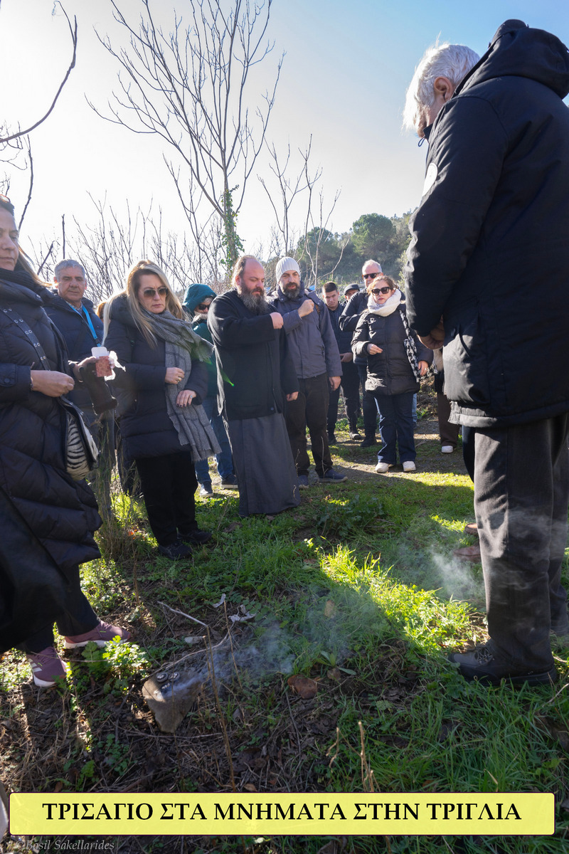 Η πρώτη εμπειρία για μας ήταν το τρισάγιο που κάναμε στα νεκροταφεία της Τρίγλιας. Περάσαμε στο χώρο των κοιμητηρίων δίπλα στο εκκλησάκι που έκτισε ο Αγ. Χρυσόστομος. Τα κοιμητήρια εκχερσώθηκαν τότε, λίγο μετά το 1922 και δεν έμεινε τίποτε. Μόνο ο χώρος παρέμεινε, μαζί με μέρος της τοιχοποιϊας με την επιγραφή που σχηματίζεται από τούβλα: «Σαλπίση και εγερθήσονται οι εν τοις μνημείοις. Χορηγία κοινή ορθοδόξων Τριγλίας οικοδομήθη». Το εκκλησάκι κατάντησε, αποθηκη για τον ιδιοκτήτη του χώρου. Εμείς όμως τελέσαμε το τρισάγιο, με ευλάβεια. Έψαλε ο παπα Δημήτρης.  Σκύψαμε τα κεφάλια και με συγκίνηση είπαμε «Αιωνία τους η μνήμη».