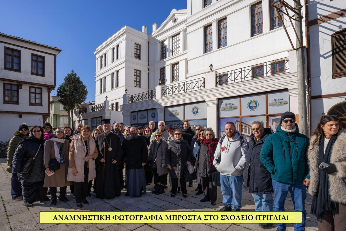 Προχωρήσαμε στην είσοδο του μεγαλοπρεπούς σχολείου όπου την επομένη έγιναν εκδηλώσεις κοπής πίττας και χορευτικών συγκροτημάτων.  Ακούσαμε την ιστορία του, πως κτίστηκε από τον Άγ, Χρυσόστομο με δωρεές Τριγλιανών, κυρίως του Ιωάννη Σάπαρη και πολλές άλλες ιστορίες από τον ερευνητή κ. Αποστολάτο. Βγήκαμε μια αναμνηστική φωτογραφία και συνεχίσαμε.