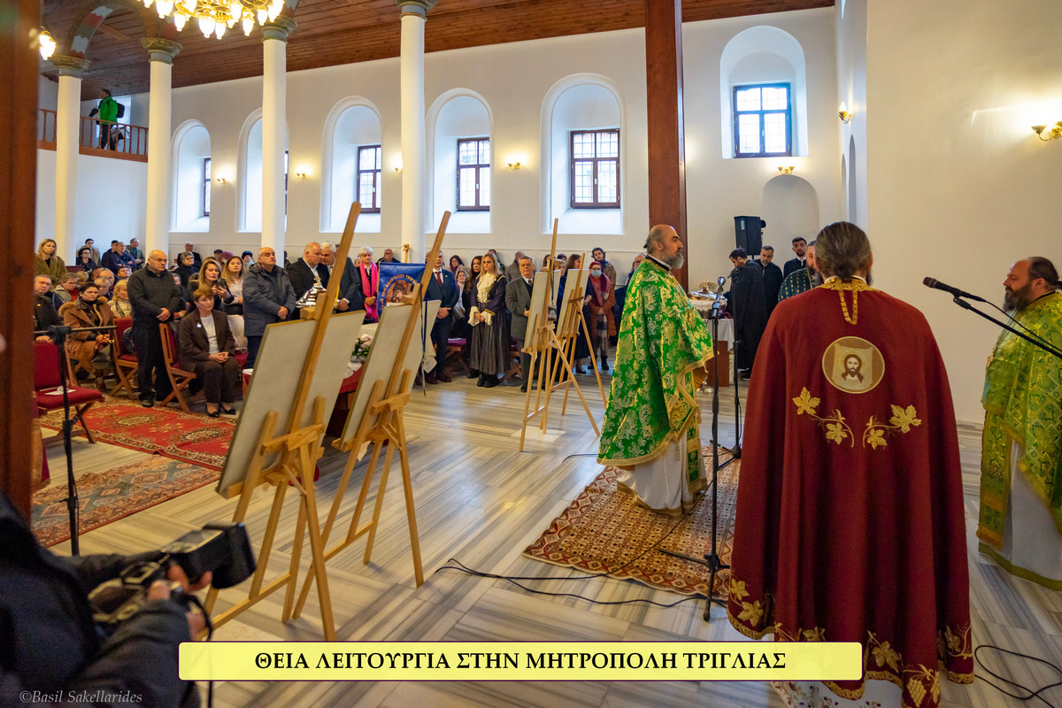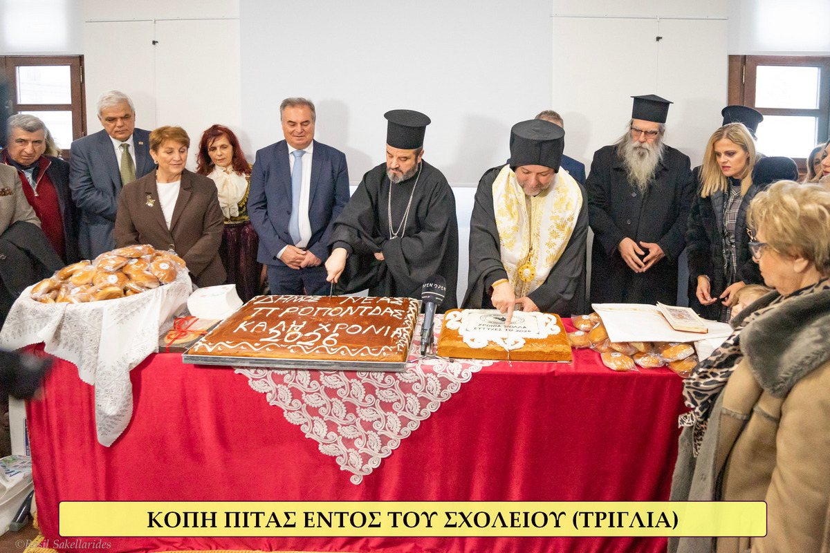 Η συνέχεια εκτυλίχθηκε στο εσωτερικό του μεγαλοπρεπούς σχολείου που έκτισε ο Αγ. Χρυσόστομος.  Το εσωτερικό του σχολείου είναι όμορφα ανακατασκευασμένο και αποτελεί κόσμημα αρχιτεκτονικής για την περιοχή. Εκεί τελούνται πολλές εκδηλώσεις. Σήμερα ήταν η σειρά του Συλλόγου Απανταχού Τριγλιανών και του Δήμου Νέας Προποντίδας να κόψουν τη βασιλόπιττα. Μίλησε ο μητροπολίτης Προύσης, δήμαρχοι, εκπρόσωποι των Συλλόγων και οι ιερείς ευλόγησαν και έκοψαν τις δύο βασιλόπιτες. Ευλογία και καλοτυχία στους τυχερούς που βρήκαν το «φλουρί». Ακολούθησαν παραδοσιακοί χοροί από το Σύλλογο Μικρασιατών Καβάλας και μετά από όλο τον κόσμο.