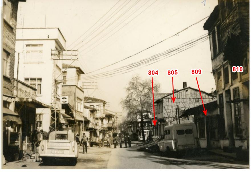 4 Φωτο των κτιρίων στα οικόπεδα 810-809-807-806, άγνωστης χρονολογίας λήψης πριν από την ανέγερση των νέων (αρχείο Bursa KVKBK)