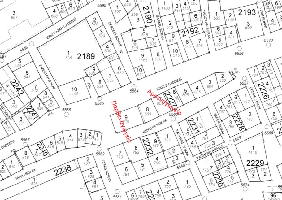 3. Το παλαιό Παρθεναγωγείο είχε ανεγερθεί στο οικόπεδο 810 του ΟΤ 2227 του τουρκικού Κτηματολογίου, και